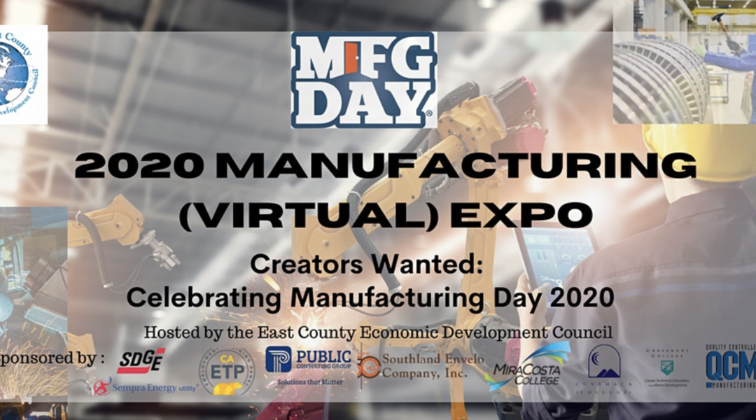 The 5th Annual Manufacturing Expo highlighting job opportunities in East County’s manufacturing sector will be held virtually this year from 1-4 p.m. Thursday, Oct. 1.