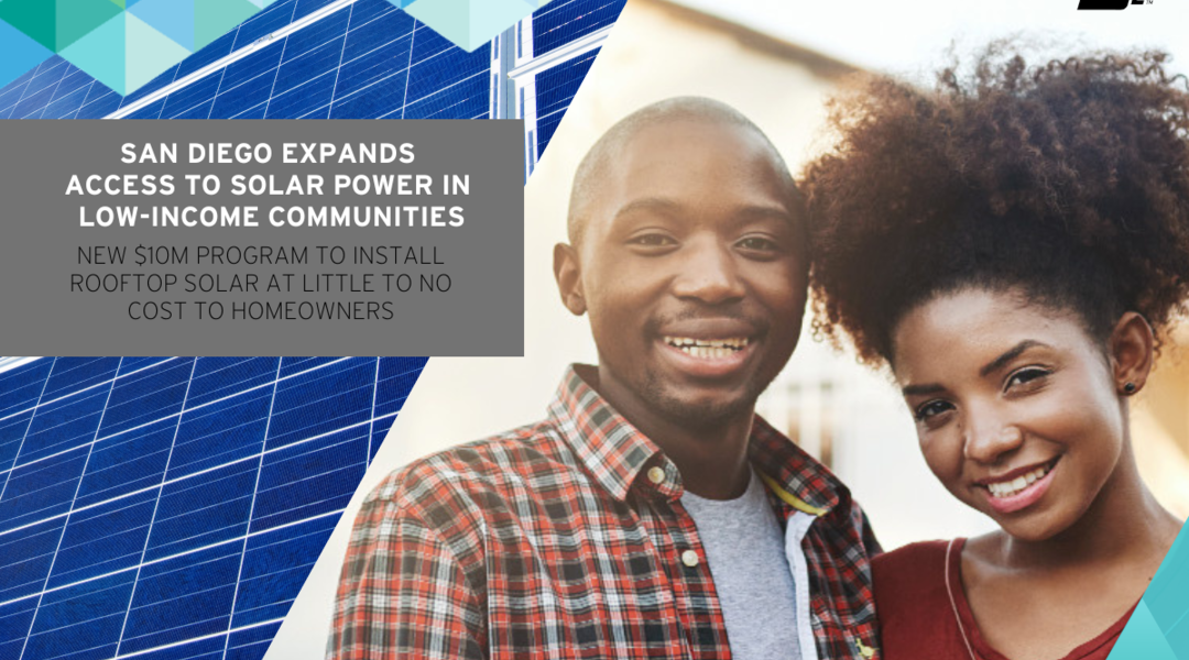 The San Diego Solar Equity Program will provide $1 million per year for 10 years to offset the cost of solar installations for income-qualified homeowners located within the city’s Communities of Concern as defined by San Diego’s Climate Equity Index.
