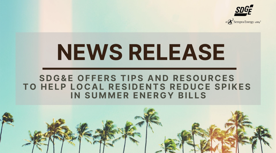 SAN DIEGO, May 29, 2020 – Ahead of summer, San Diego Gas & Electric (SDG&E) is offering tips and resources to help local residents reduce energy bill spikes that could occur due to hot weather and an increase in telecommuting and homeschooling due to the pandemic.